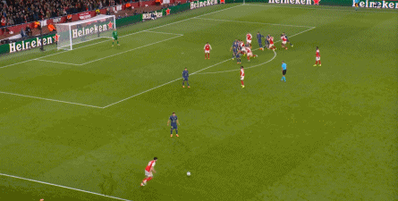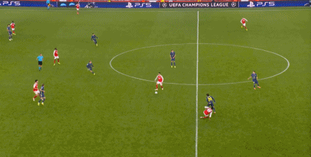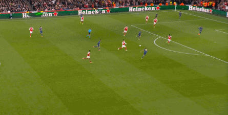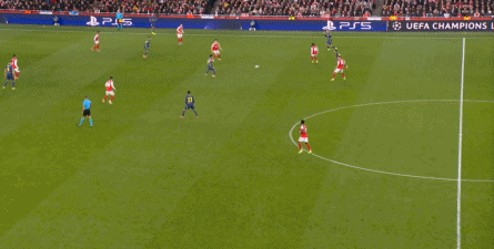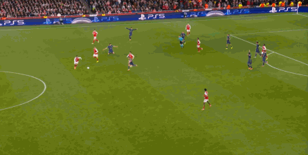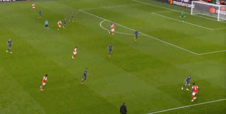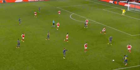 而在阿森纳这边,在主场作战的情况下,他们在前场和丢球后的逼抢就比较积极,并且在第4分钟,因此打出了一次险些破门的进攻: